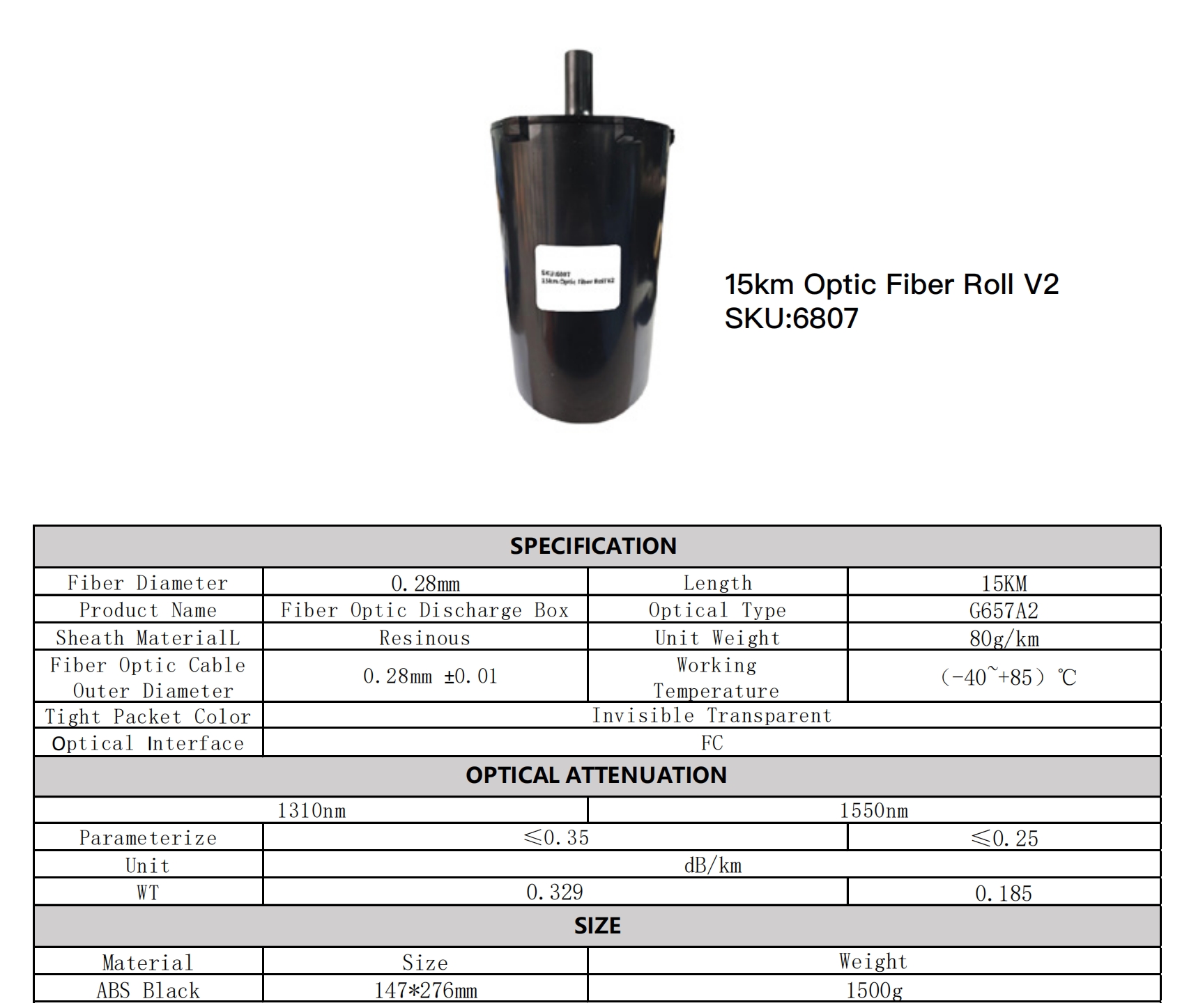 The FPV Fiber 10km- Coating 0.28mm--inner Pay-off outdoor aerial fiber optic cable is a high-quality single-fiber cable designed for outdoor use. With a fiber count of 1, this cable is specifically built for reliable long-distance communication applications.